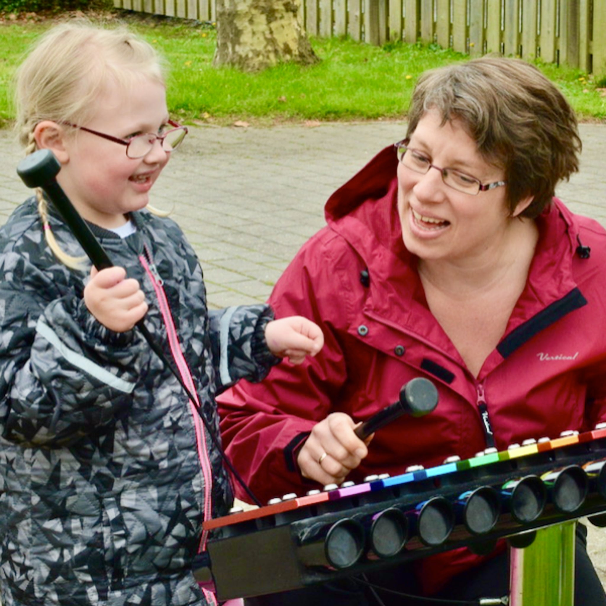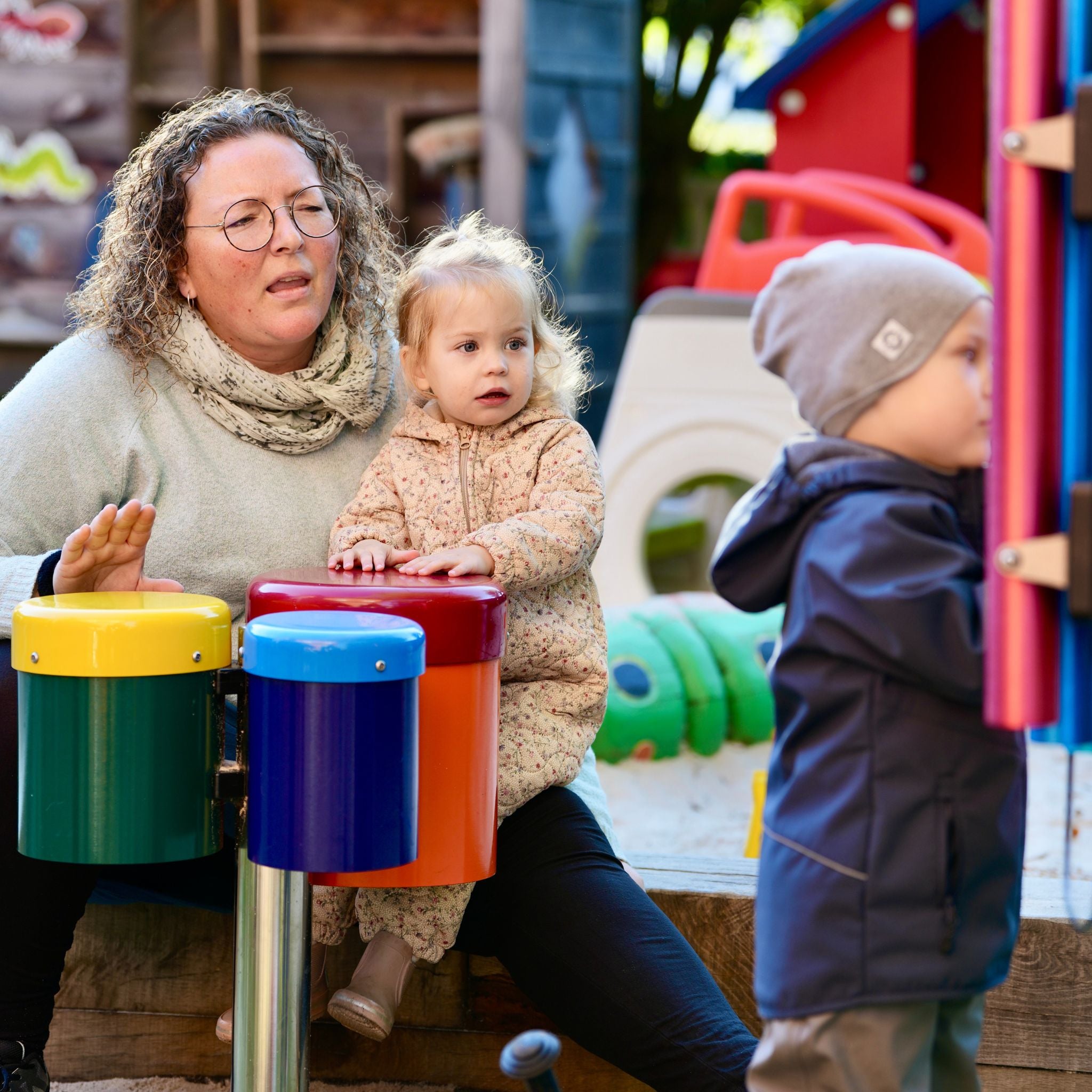 Musikinstrumenterne på legepladsen er blevet en naturlig del af dagligdagen i Tveds Musik- og Idrætsbørnehave. Børnene samles ofte i små grupper for at eksperimentere med forskellige lyde og rytmer, og pædagogerne inddrager musikken i læringsaktiviteter, der styrker alt fra talforståelse til sproglig udvikling.