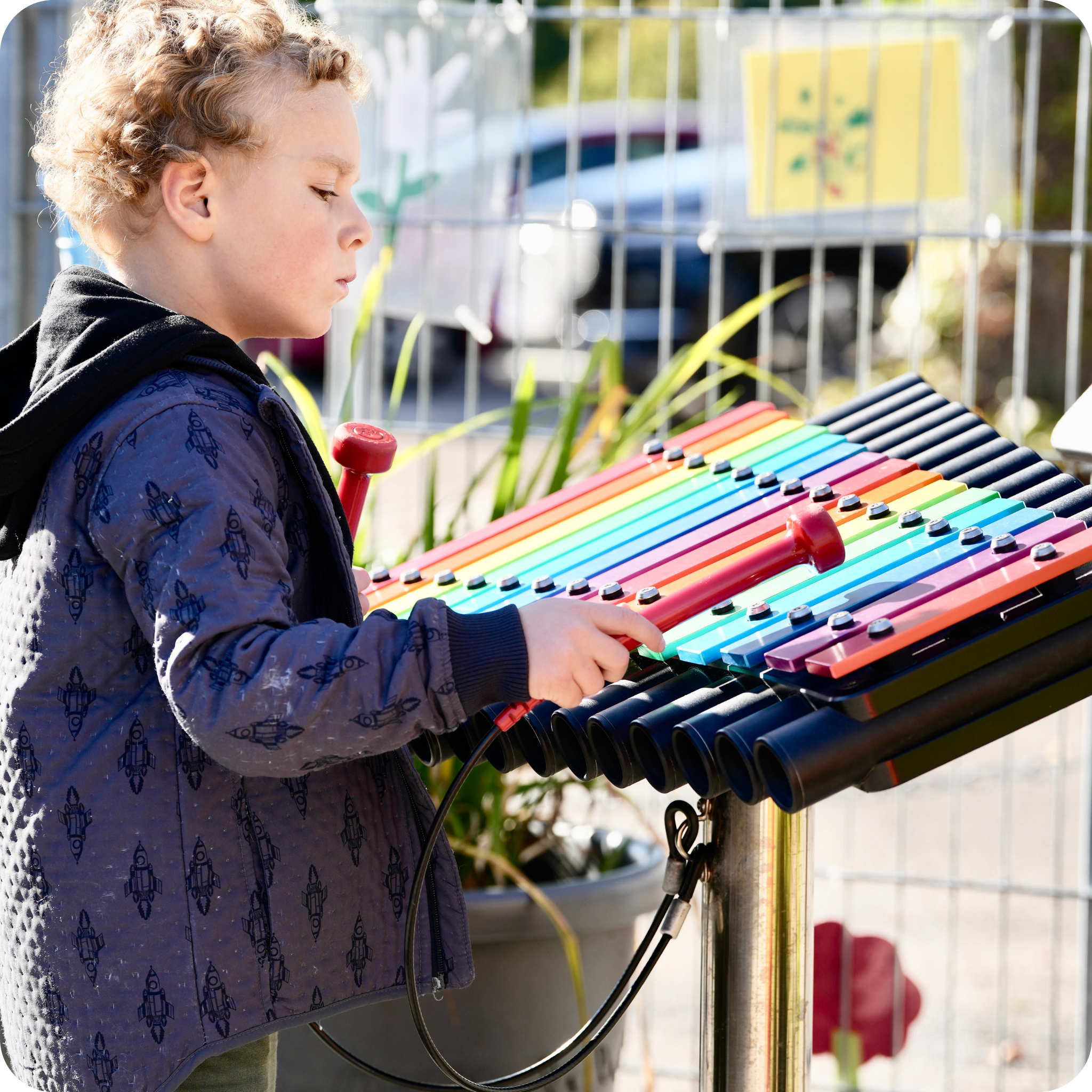 Our outdoor musical instruments are designed to inspire children to learn through play and movement. In schools, they become a natural gathering point where students develop creativity, motor skills and collaboration skills.